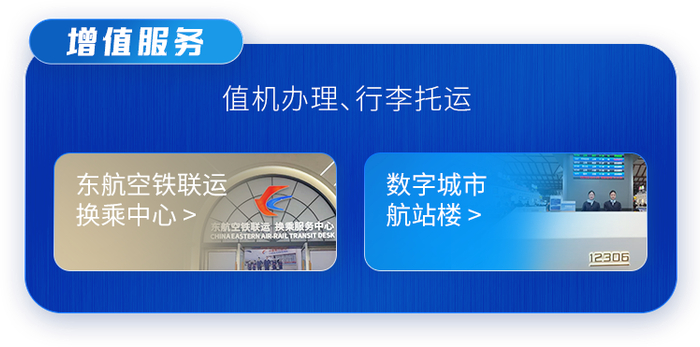 提供服务:为铁路抵达旅客提供值机手续办理与行李托运服务(覆盖上海浦东国际机场及上海虹桥机场T2航站楼,东航/上航实际承运航班)