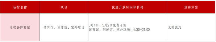 淳安县体育馆向大众惠民开放体育馆、训练馆、室外球场。