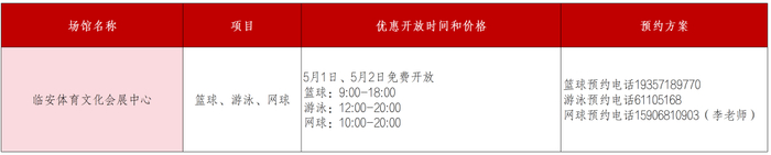 临安体育文化会展中心篮球馆向大众惠民开放篮球、游泳、网球。