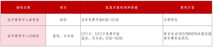 临平体育中心体育场、临平体育中心训练馆2个体育场馆向大众惠民开放。