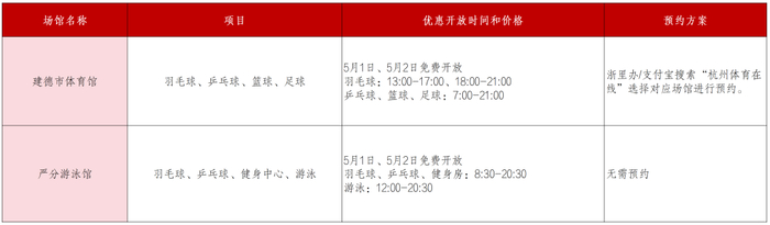 建德市体育馆、严分游泳馆向大众惠民开放羽毛球、乒乓球、篮球、足球、健身中心、游泳。