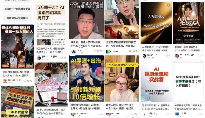 在抖音、小红书、视频号等平台上,“AI短剧是下一个财富风口”“零基础月入十万”“普通人逆袭的最后机会”等话术铺天盖地。各类“AI短剧实战训练营”“爆款AI剧变现课”售价从99元到上万元不等,宣称“三天学会,一周回本”。