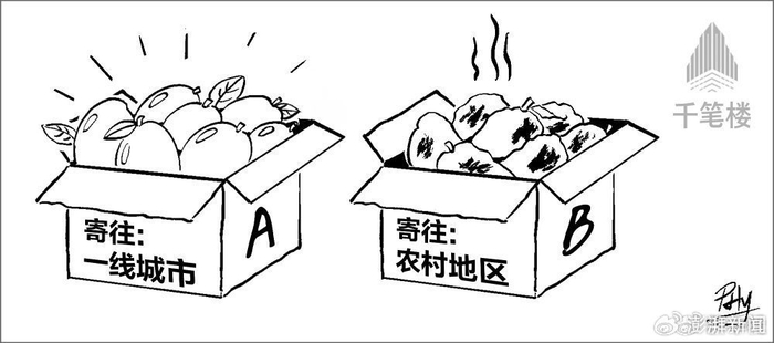 同一款商品、同一个链接、同一家店铺,寄到省会城市的菠萝新鲜饱满,寄到农村乡下的则青黑干瘪;一线城市收到的电饭锅是热门款、正品货,县城乡镇收到的却是滞销版、伪劣品……