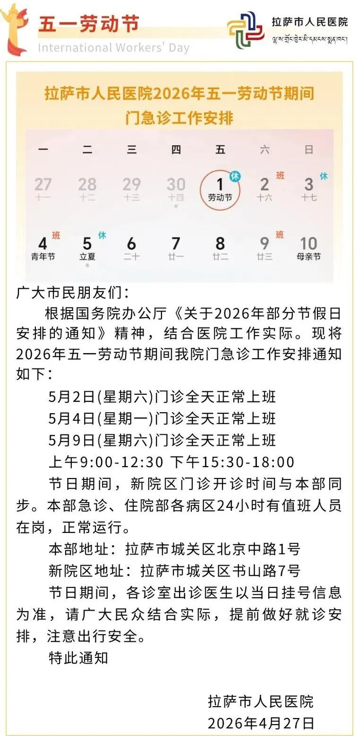 1.“五一”假日期间,医院门诊5月1日、5月2日全天放假,5月3日、5月4日、5月5日上午半天门诊;