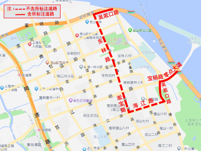 2026年5月1日18时至22时,沿吴淞口路—东林路—淞宝路—海江路—吴淞口路—宝杨路—零点大道以及长江江堤围合区域内的地面道路(不含上述道路,含吴淞口路、宝杨路、零点大道),禁止车辆通行。