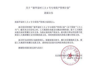 2018年1月,新华富时发布公告称,工大1号和工大2号将于1月15日投资期限届满。根据资管计划约定,“资产管理人有权设置不长于六个月的资产处置期间,处置期内计划继续存续”,该资管计划进入处置期。