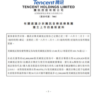 腾讯:腾讯音乐IPO定价为每ADS 13美元