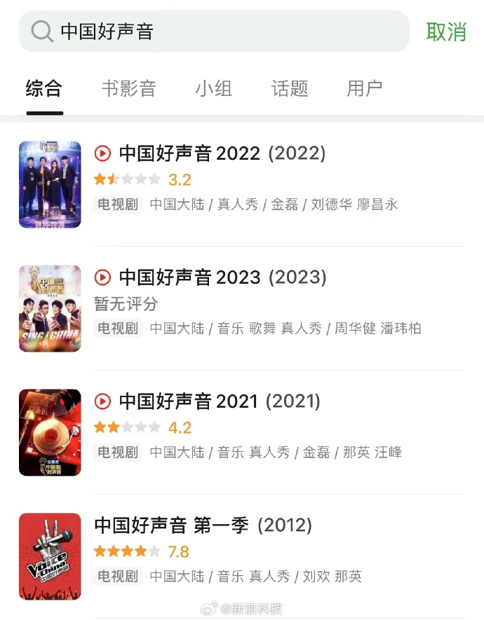 中国好声音评分跌至3.2