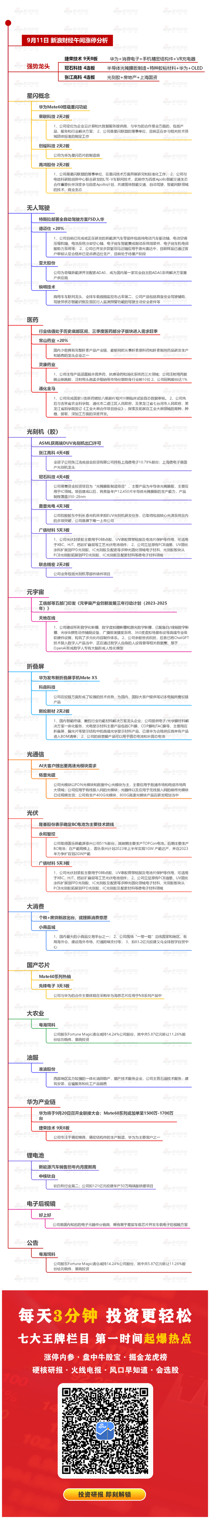9月11日午间涨停分析 媒体滚动 2023.09.11 11:44 沪指震荡反弹涨0.57%,医药医疗股集体走强,华为概念股继续活跃。捷荣技术录得9天8板,冠石科技、张江高科双双晋级4连板,一图看懂>>