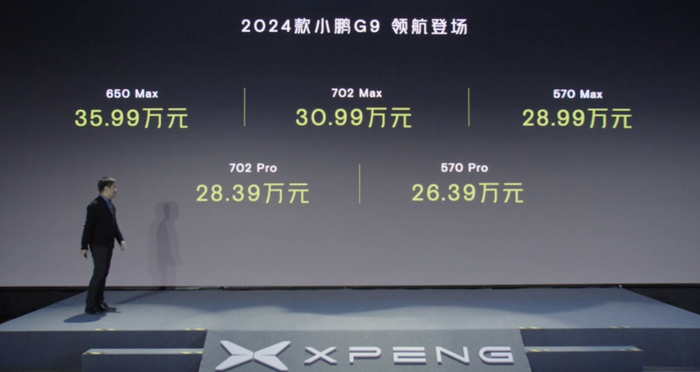 2024款G9上市,共分为5个版本,售价区间26.39-35.99万元据悉,该车将全系标配扶摇架构功能,包括XNGP智驾系统、超线程智能底盘、800V碳化硅快充平台。此外,小鹏汽车董事长何小鹏透露,小鹏城市NGP功能将在今年底开通50城。