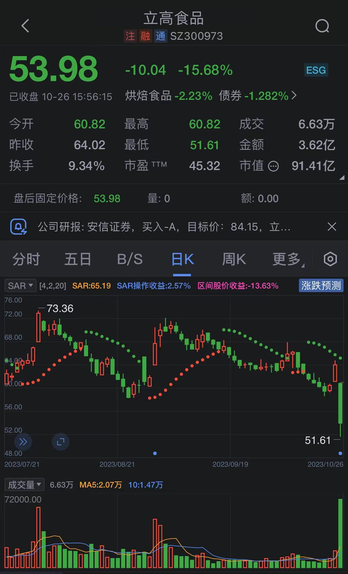 立高食品今日跌15.68% 四机构净卖出9287.94万元