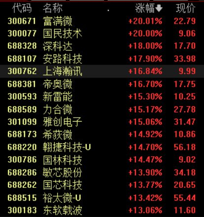 芯片概念强势爆发,富满微等近20股涨停