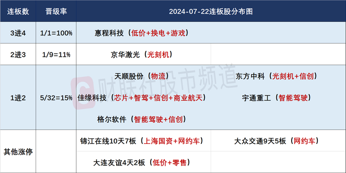7月22日连板股分析:锦江在线10天7板 红利板块集体补跌