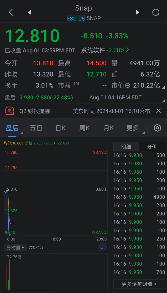 (SNAP.N)美股盘后暴跌22%。