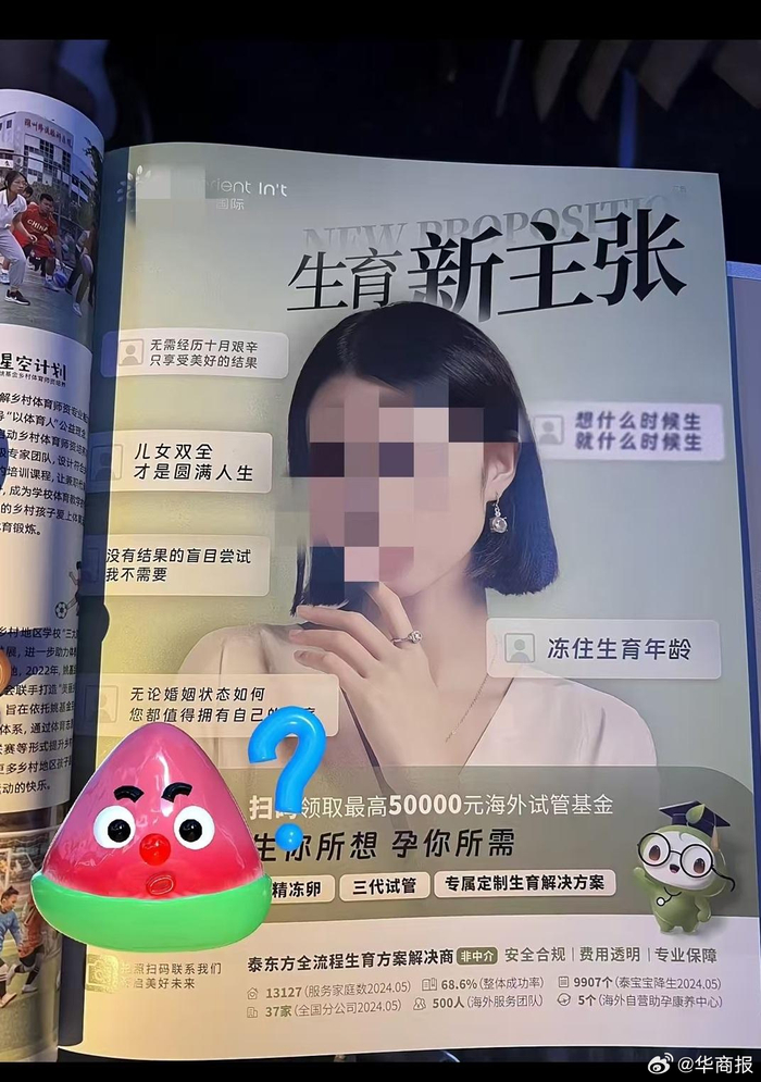 9月4日,有网友称乘坐厦门航空航班时,无意中发现厦航官方杂志内页广告居然出现了疑似代孕广告。5日,厦门航空方面回应华商报大风新闻记者称,目前已将相关杂志撤下,对于出现广告原因正在调查核实中。据该网友贴出的图片显示,这份杂志封面名称为厦门航空,旁边有“09”字样,应该为2024年9月新刊。其中一张内页彩页广告显示,主题为“生育新主张”,一家名为“xx国际”的公司,自称为全流程生育方案解决商,广告下方罗列了其海外服务团队、海外自营助孕康养中心,宣传词不乏“无需经历十月辛苦,只享受美好的结果”、“海外试管”、“想什么时候生,就什么时候生”等宣传语。该网友吐槽称,“无需十月怀胎,这暗示不要太明显”,“产业链不在国内就可以明目张胆打广告”?“关键这广告还印在厦航自己的官方杂志上”?该网帖引发不少网友关注。(华商报)