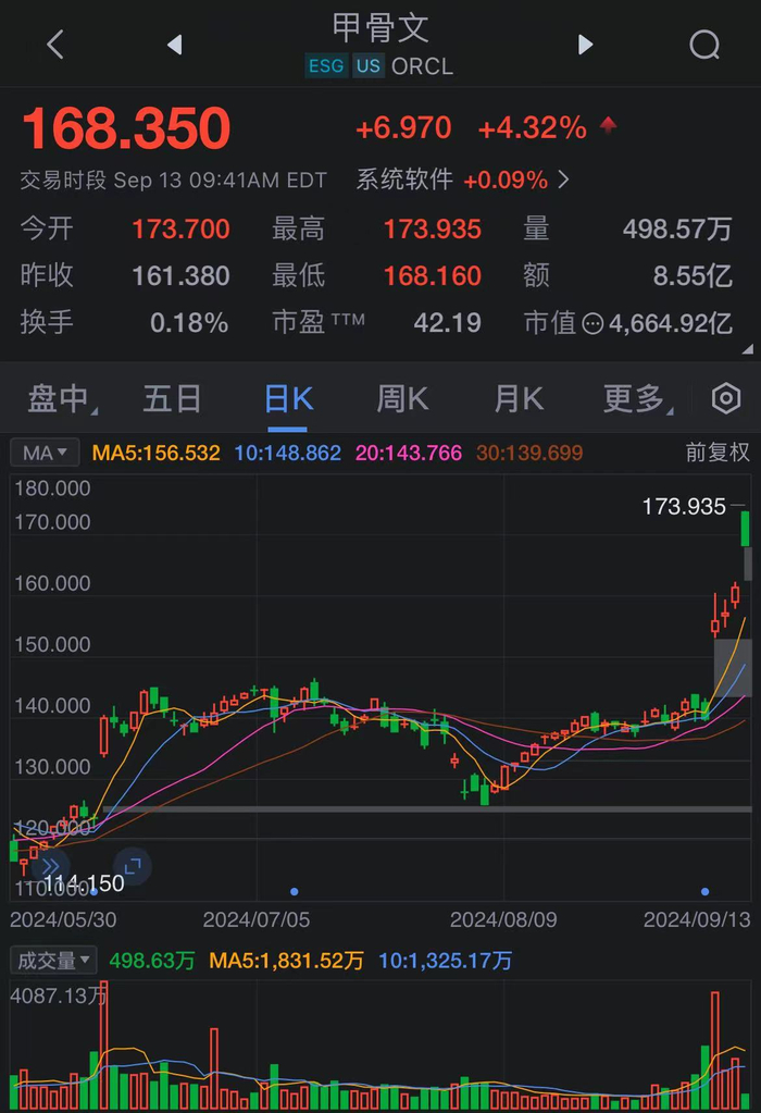甲骨文股价开盘大涨7.8% 创下纪录新高