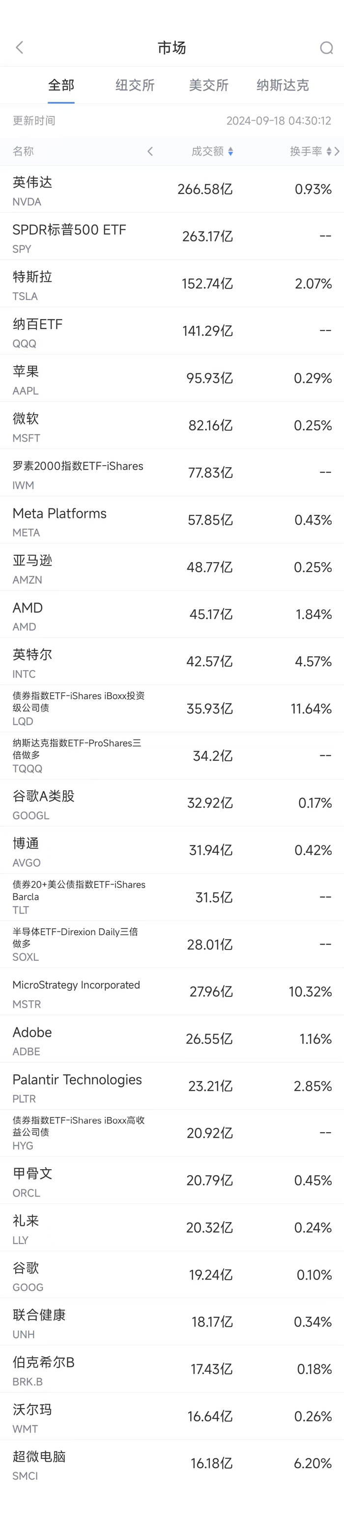 9月17日美股成交额前20:沃尔玛跌2.4%,已清仓所持达达全部股份
