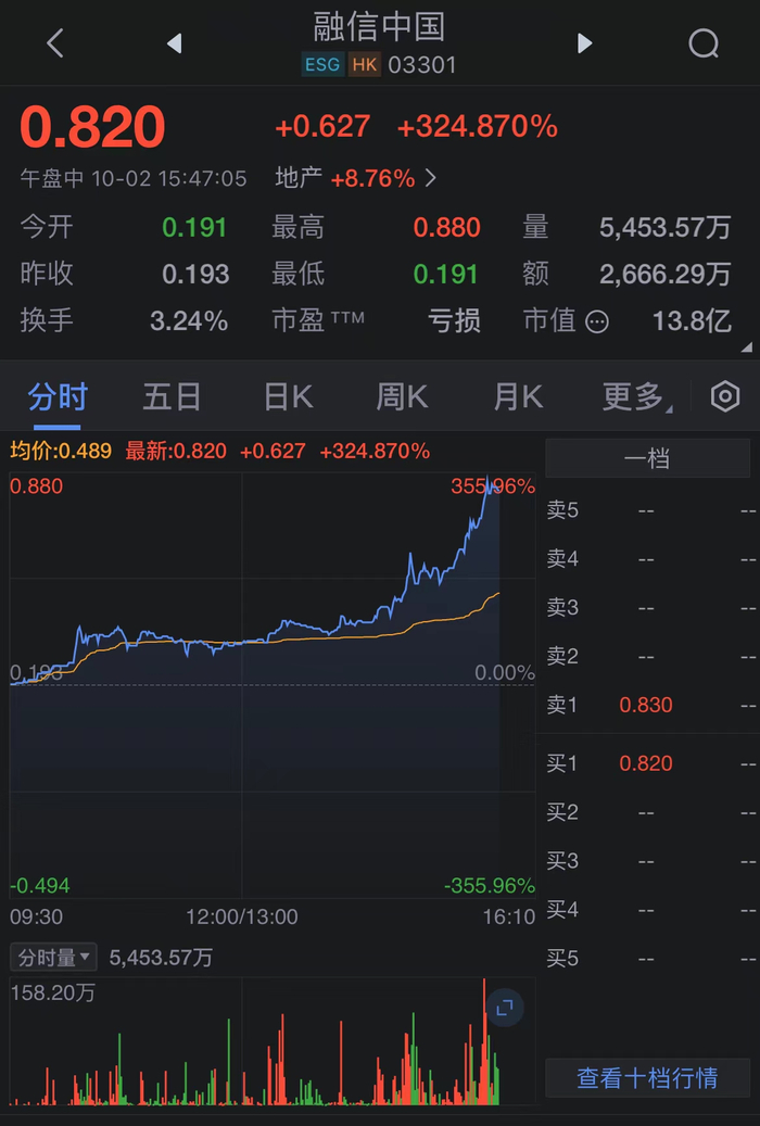 融信中国尾盘涨幅扩大至319%