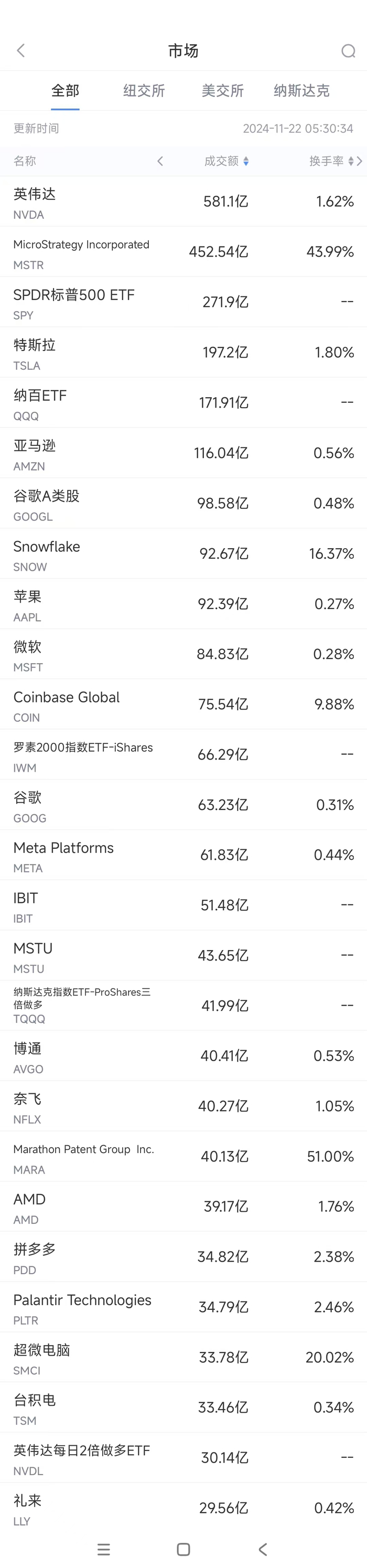 11月21日美股成交额前20:拼多多三季度营收不及预期,股价大跌10.6%