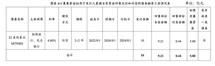 11月25日,美的置业集团有限公司发布2024年度第五期中期票据发行文件。根据募集说明书,本次中期票据基础发行规模为2亿元,发行金额上限为10亿元。本期募集资金中,5亿元用于置换发行人前期行权回售的债务融资工具兑付及付息的自有资金,5亿元用于补充流动资金。本次票据发行期限为3年。