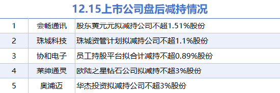 12月15日上市公司减持汇总