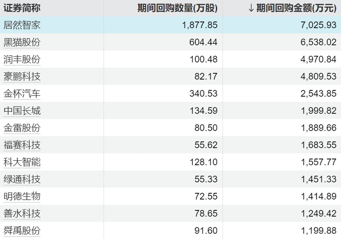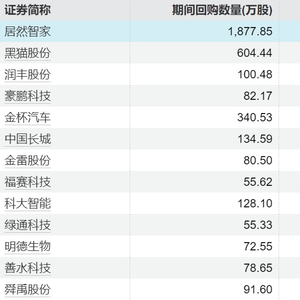 44家上市公司股票获回购,居然智家回购金额最高