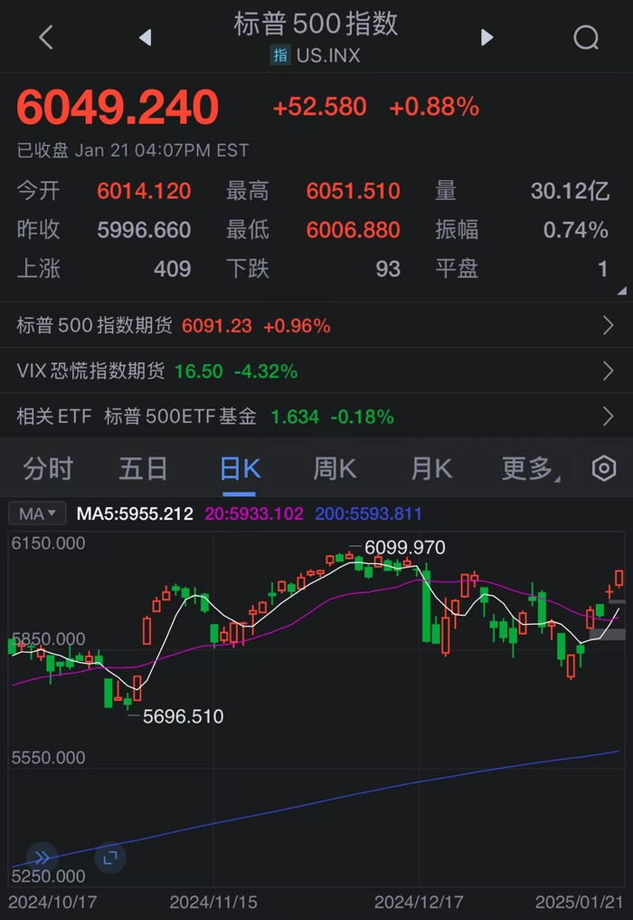 美股三大指数集体收涨,纳指涨0.64%,标普500指数涨0.88%,道指涨1.24%。大型科技股多数上涨,英伟达、亚马逊涨超2%,奈飞、谷歌涨超1%,苹果跌超3%。甲骨文涨超7%,消息称特朗普将宣布OpenAI、软银和甲骨文联手投资人工智能基础设施。