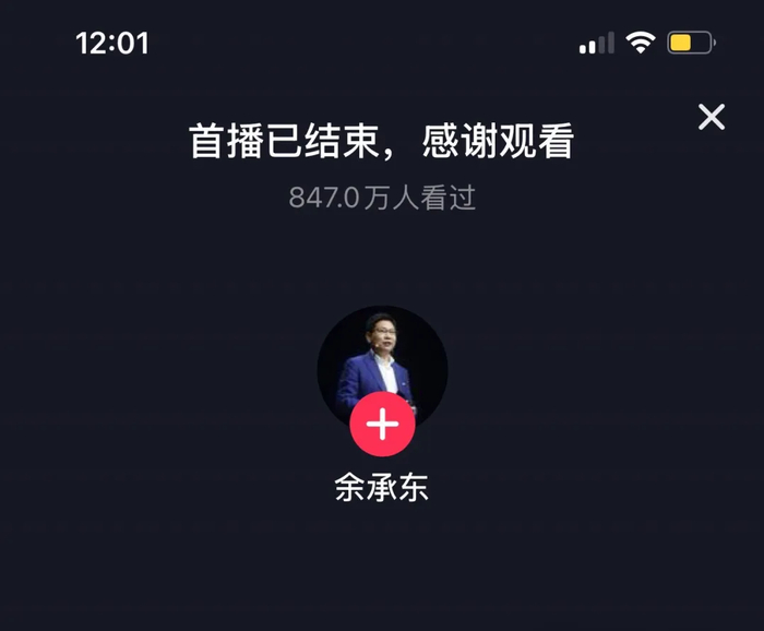 余承东自驾回家过年直播被封 抖音客服:不建议开车时直播