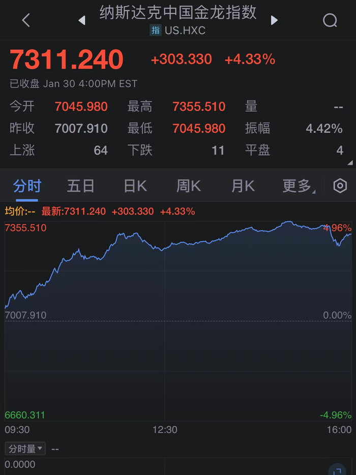 热门中概股普涨 纳斯达克中国金龙指数涨4.33%
