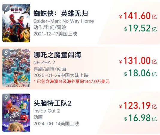 据网络平台数据,电影《哪吒之魔童闹海》总票房(含点映、预售、港澳台及海外票房)突破131亿元。