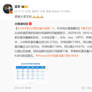 报告称小米手机3月激活量中国第一,雷军时隔9天再发声:感谢大家支持