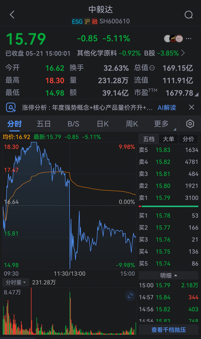 盘中上演“天地板”,中毅达回应