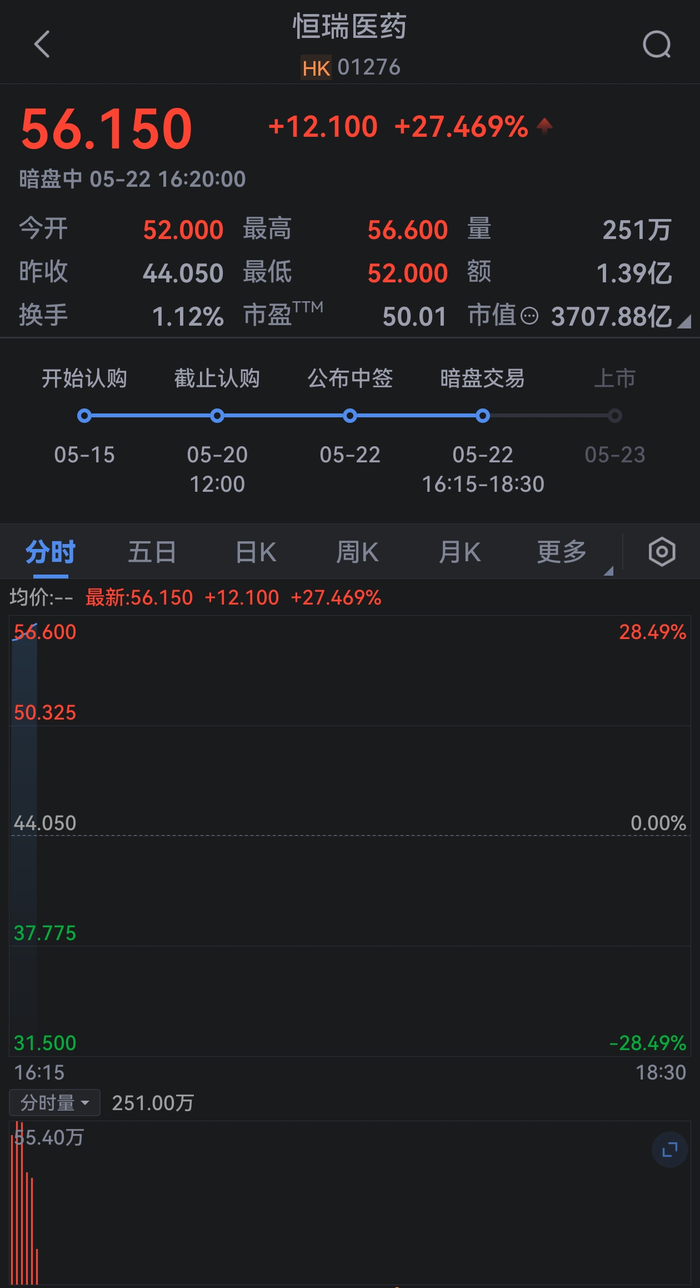 恒瑞医药股价在香港暗盘交易中一度上涨28%。