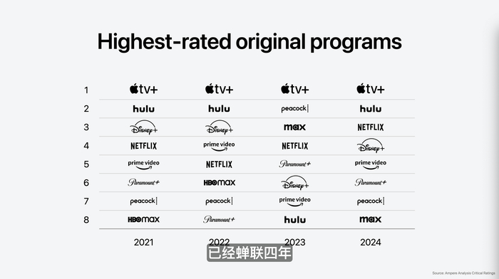 库克:Apple TV+连续四年居“收视率最高的原创节目榜”第一