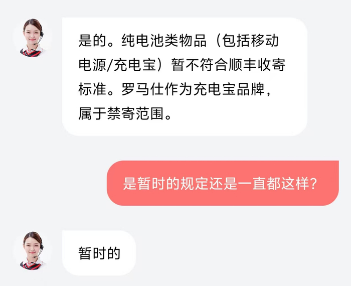 顺丰快递无法揽收所有充电宝品牌?客服回应:“暂时性”要求
