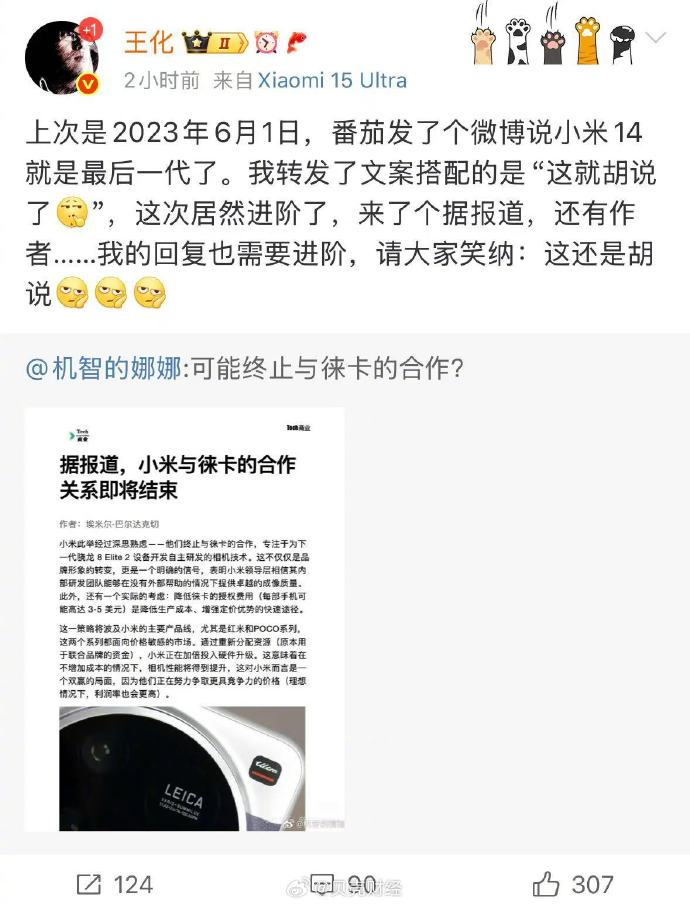 王化称小米徕卡终止合作是胡说 滚动播报 2025.07.06 21:49 有传闻称小米与徕卡合作将结束,小米公关总经理王化辟谣。王化表示:这并非双方合作首次遇谣言,此前也有过类似情况。实际上,双方合作近期仍在深化。