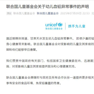 联合国儿童基金会发布关于幼儿血铅异常事件的声明。