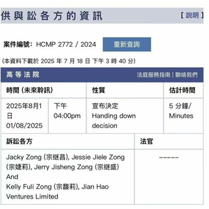 该案件8月1日将在香港高等法院进行聆讯,性质是宣布决定,估计时间只有5分钟,预计会是一个程序性的流程。