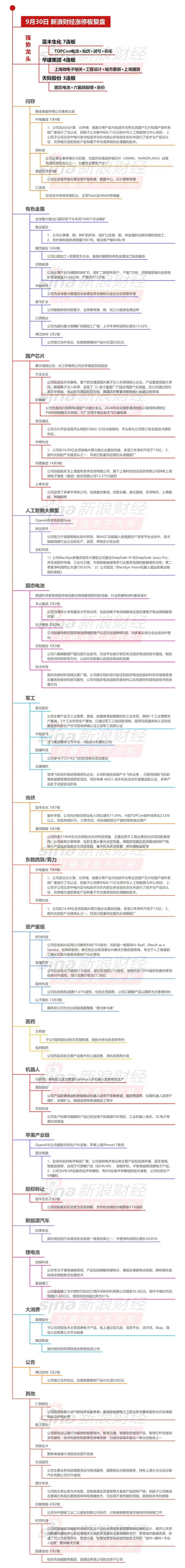 9月30日沪深两市涨停分析 滚动播报 2025.09.30 16:03 沪指震荡上涨0.52%逼近3900点,半导体等国产替代概念全线爆发,中芯国际、华虹公司均创历史新高。蓝丰生化7连板,华建集团4连板,一图看懂>>