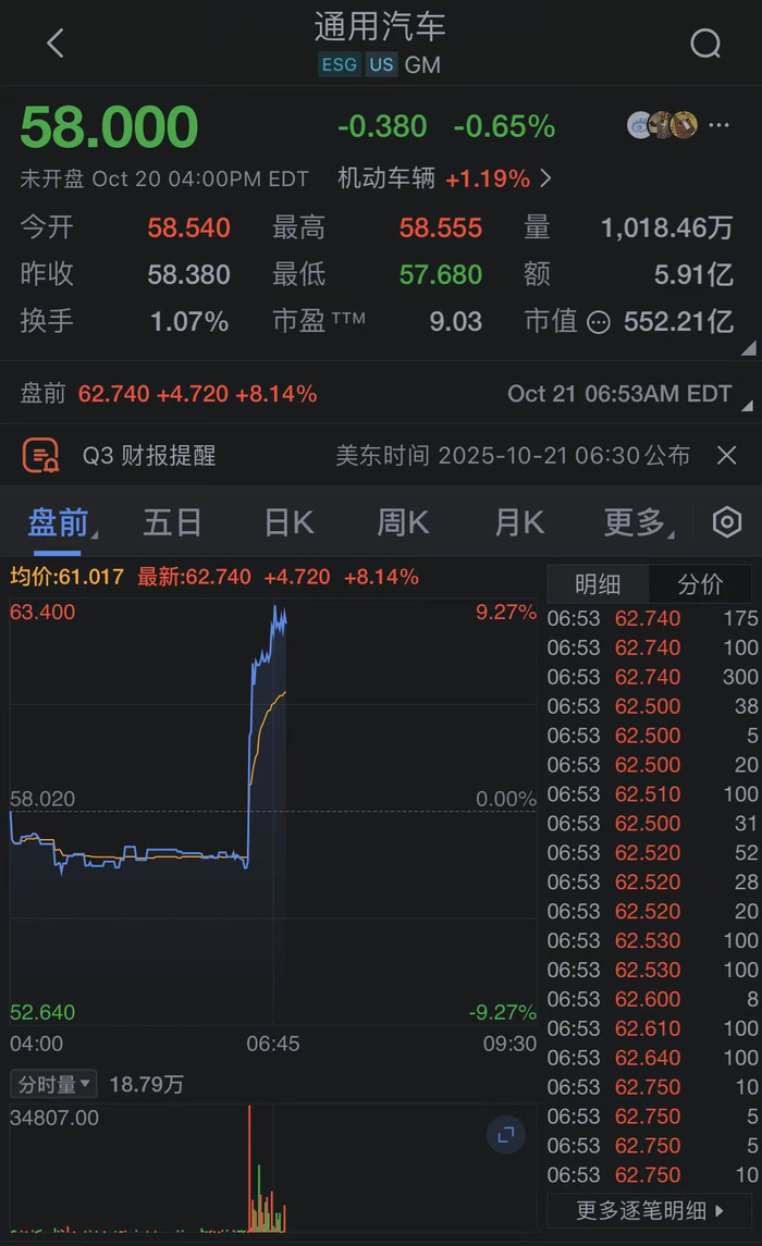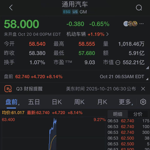 通用汽车股价涨幅扩大,盘前最新上涨8.2%。