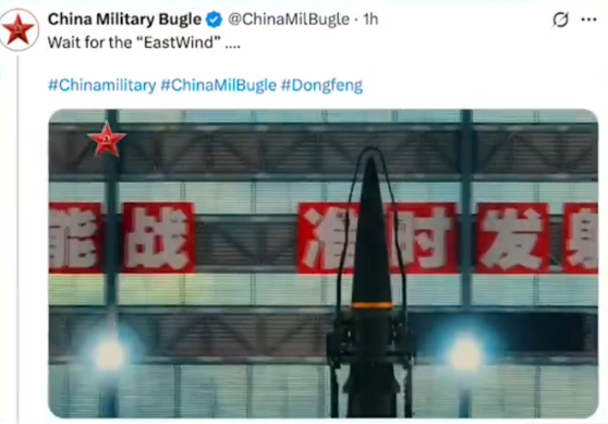 中国军号海外再发新视频,英文配文:Wait for the “EastWind” (等待“东风”)(环球时报)