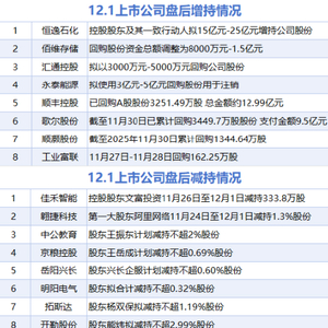 12月1日增减持汇总