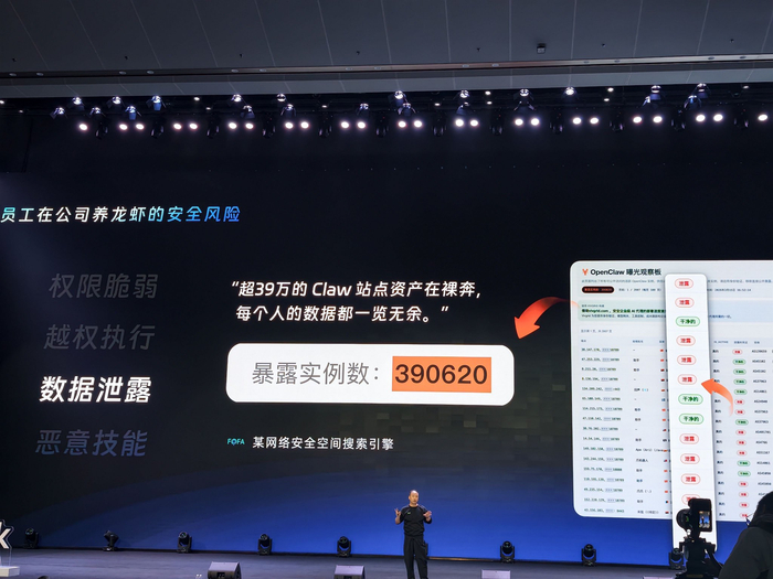 3月17日上午消息,今日在2026 AI钉钉2.0年度新品发布会上,钉钉创始人、CEO陈航发布AI原生工作平台“悟空”。陈航认为,员工在公司养“龙虾”存在“权限脆弱”、“越权执行”、“数据泄露”、“恶意技能”四大安全风险。他举例,有人养了龙虾在3000人大群里将IP地址、真实姓名、公司所有信息等全部都暴露到群里面去了。在数据泄露风险上,有超39万的claw站点资产在裸奔,每个人的数据都一览无余。“如果龙虾被全部放出来,它一定会危害整个生态,左手抓虾,右手抓鱼,到处打洞,如果个人电脑或公司电脑一旦装上,全是在开后门,各种木马和病毒,我们希望能为企业提供一个安全可控的工作环境,让AI的工作也是可追溯的。”陈航表示。(新浪科技)