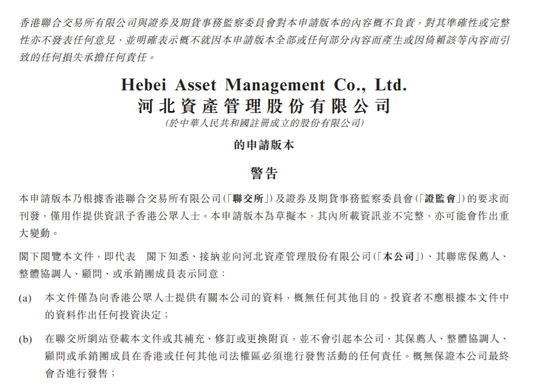 财联社7月2日讯(记者 高萍)港交所披露易显示,河北资产管理股份有限公司(简称“河北资产”)近日已向港交所提交上市申请书,冲击港股上市。