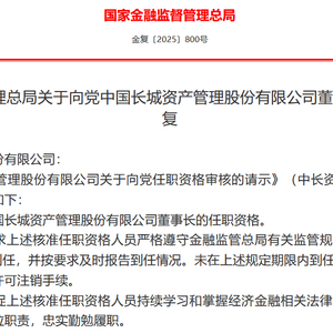 1月26日金融一线消息,国家金融监督管理总局日前发布《关于向党中国长城资产管理股份有限公司董事长任职资格的批复》,核准向党中国长城资产管理股份有限公司董事长的任职资格。