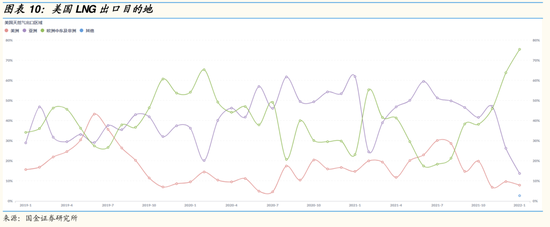从美国到欧盟27国和英国的LNG出口量从2021年11月的每天34亿立方英尺(约9628万立方米)大涨至2022年1月份的每天65亿立方英尺(约1.84亿立方米)。