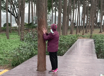 “抱树”又叫“树疗”,据说是一种很新的心理疗法,有缓解心理焦虑,提升人体“能量”的作用。
