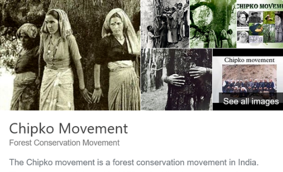 于是,在1973 年印度林业官员再次砍伐当地300棵木岑树时,手无寸铁的妇女们联合在一起,用身体挡住树木,高唱传统歌曲,以非暴力方式阻止伐木工们砍伐木岑树。
