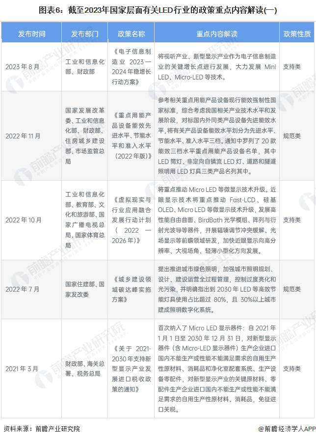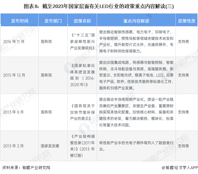近年来,我国发布和实施了一系列政策与指导意见的发布和实施,为LED行业提供了财政、技术、人才等多方面的支持,为企业创造了良好的外部经营环境,促进了国内LED行业的快速发展。LED行业主要发展政策规划如下: