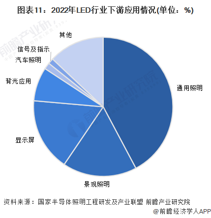 2022年,根据国家半导体照明工程研发及产业联盟的数据,通用照明领域是LED照明的重要应用板块,在LED照明行业占比42.4%,其次是景观照明和显示屏,分别占比17.3%和17.0%。